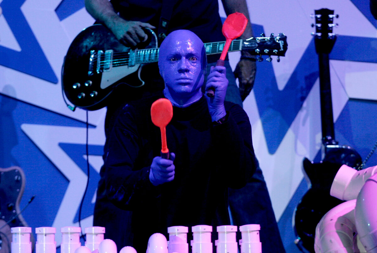 CELIA TOBIN/Daily Herald The Blue Man Group performs at the Stadium of Fire at Lavell Edwards Stadium Friday, July 4, 2008 in Provo. The night's entertainment also included performances by pop star Miley Cyrus, an Olympic tribute dance number which featured local athletes representing all the summer olympic sports, and fireworks. Radio and television political commentator Glenn Beck hosted the event.