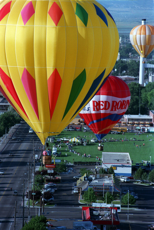 Hot air balloons take off from Freedom Field in Provo Thursday making their way long Freedom Bld. It was the beginning of three days of balloon festivities, part of the Freedom Festival, 1998 . 07/02/98 Photo/Kevin Lee