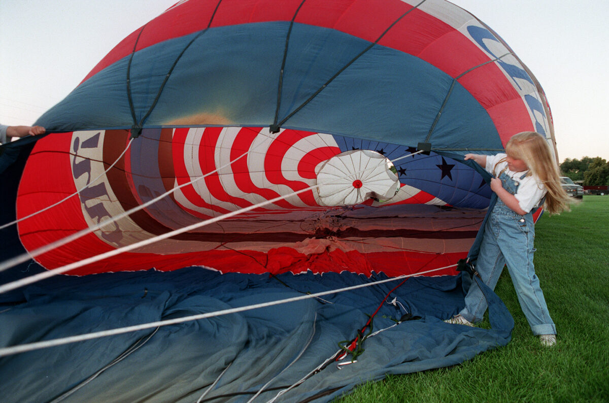 Kimberlee Bramble, age 7, helps set up the balloon before her dad pilots the craft. Thursday 07/02/98 Photo/Kevin Lee