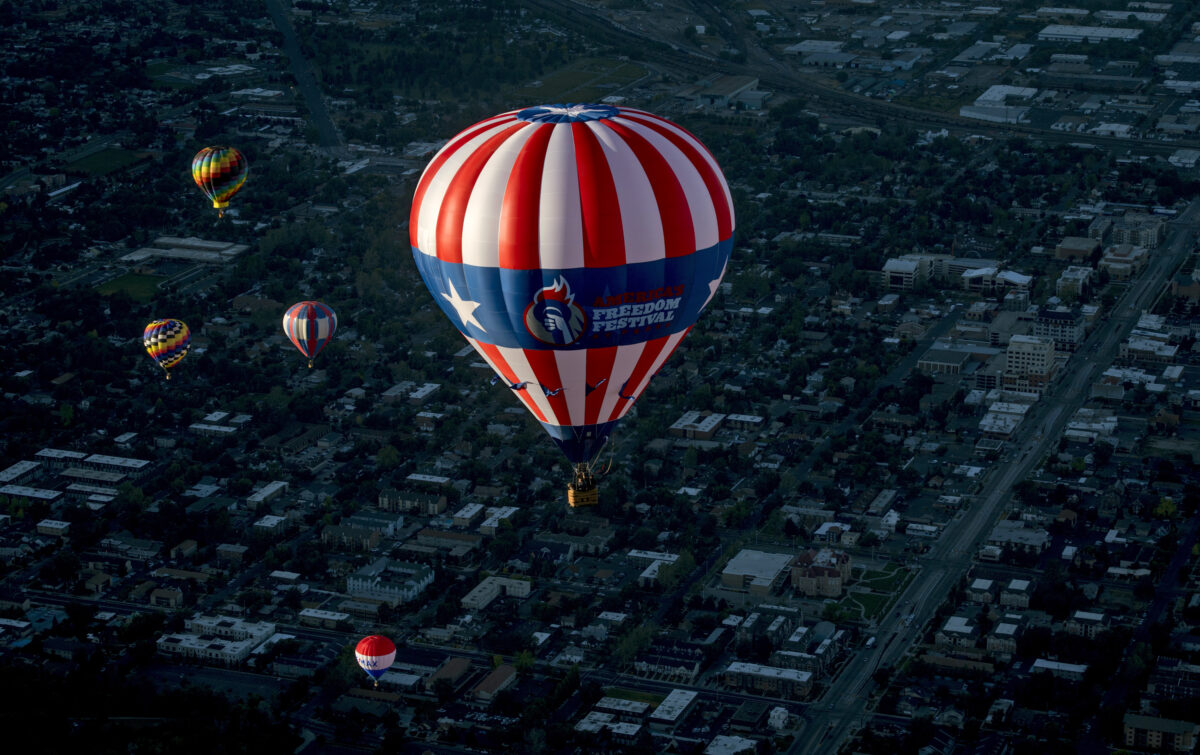 A Freedom Festival hot air balloon floats with balloons above University Avenue during preliminary flights as part of the Freedom Festival's Balloon Fest on Wednesday, July 3, 2019, in Provo. Isaac Hale, Daily Herald
