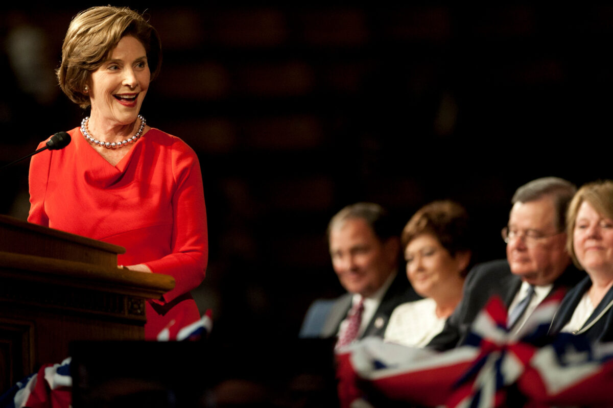 Former First Lady Laura Bush gives a keynote presentation at Freedom Festival's Patriotic Service at the Marriott Center on Sunday, June 29, 2014. GRANT HINDSLEY, Daily Herald