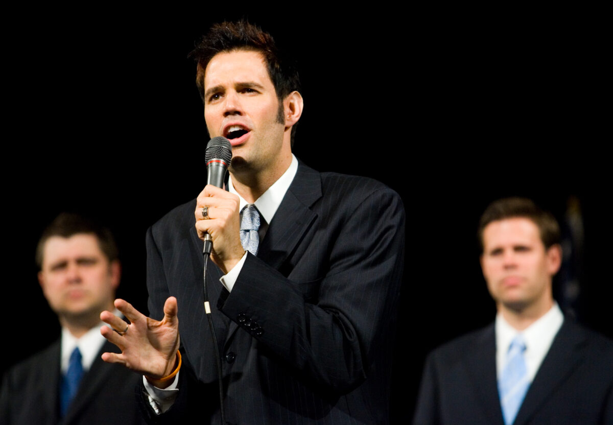 David Osmond (center) and the 2nd Generation sing selections written by Senator Orrin Hatch from their album "I Love America" during the annual America's Freedom Festival Patriotic Service on Sunday, June 28 2009 at the Marriott Center at BYU. ASHLEY FRANSCELL/Daily Herald