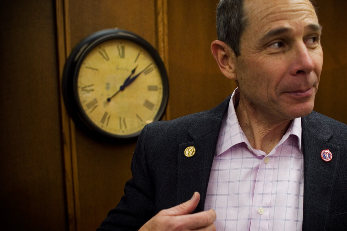 Mayor John Curtis is presented with a golden 2013 Freedom Festival pin at his office in Provo Monday, April 15, 2013. MARK JOHNSTON/Daily Herald