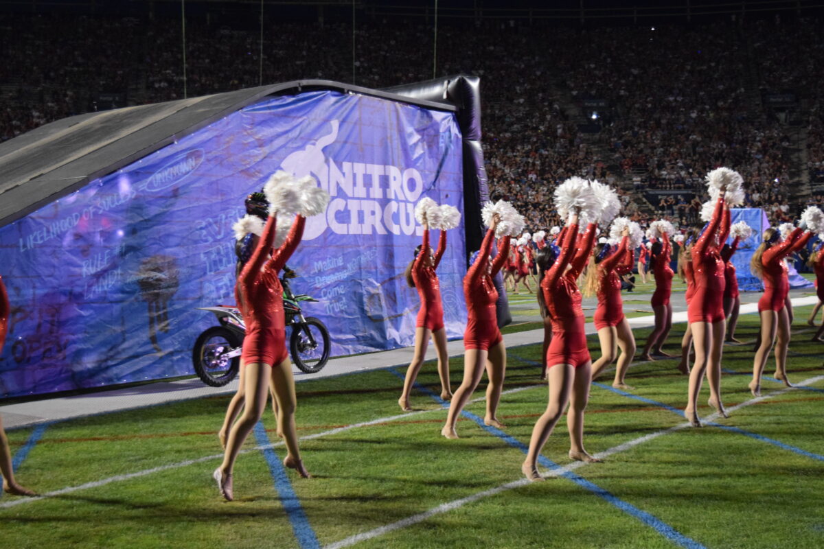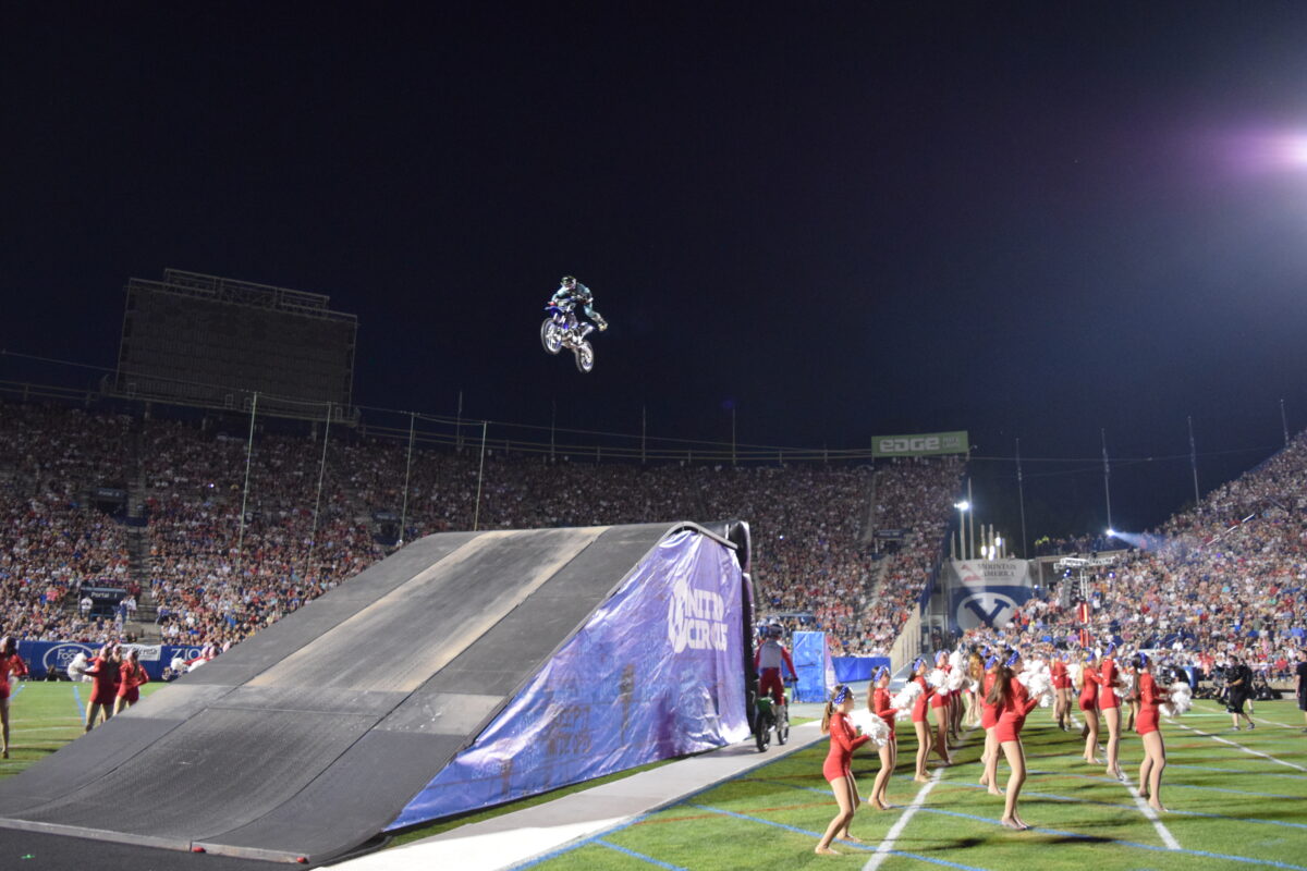 The most exciting part of the night came when six Nitro Circus riders performed backflips, whips, heel-clickers, seat grabs and other freestyle motocross tricks through the air of the football stadium.