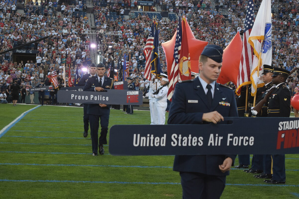 After that came the arrival of the colors and introduction of first responders John Oseguera, Mindy Nelsen, Jill Holker and Jake Dennison, followed by the national anthem performed by the Utah National Guard’s 23rd Army band.