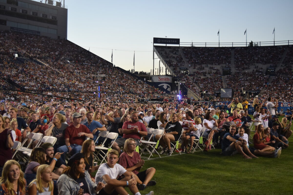 The swing dances turned to slow dances as Raye played “Little Rock” while thousands of flickering phones lit up the BYU stadium like fireflies.