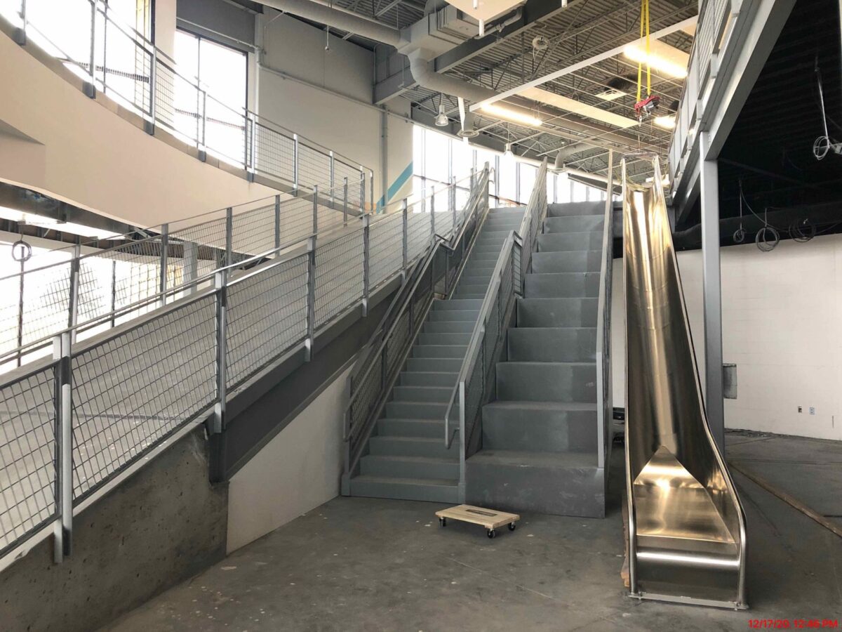 One of the fun, adult attractions in the center is next to the children’s playground area. It is a large adult-sized slide that takes you from the second to the first floor, instead of taking the stairs that are provided.