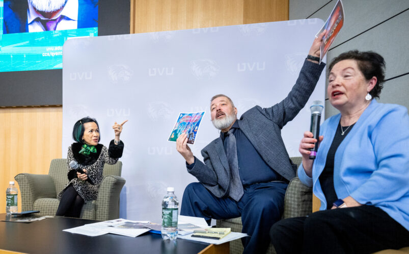Dmitry Muratov, a Russian journalist and Noble Peace Prize winner, speaks at Utah Valley University on Friday, Feb. 24, 2023.A grant from the U.S. Russia Foundation will help bolster Utah Valley University’s accelerated Russian language program, which aims to prepare students to enter the workforce with language skills and knowledge of the current geopolitical climate of Eastern Europe.