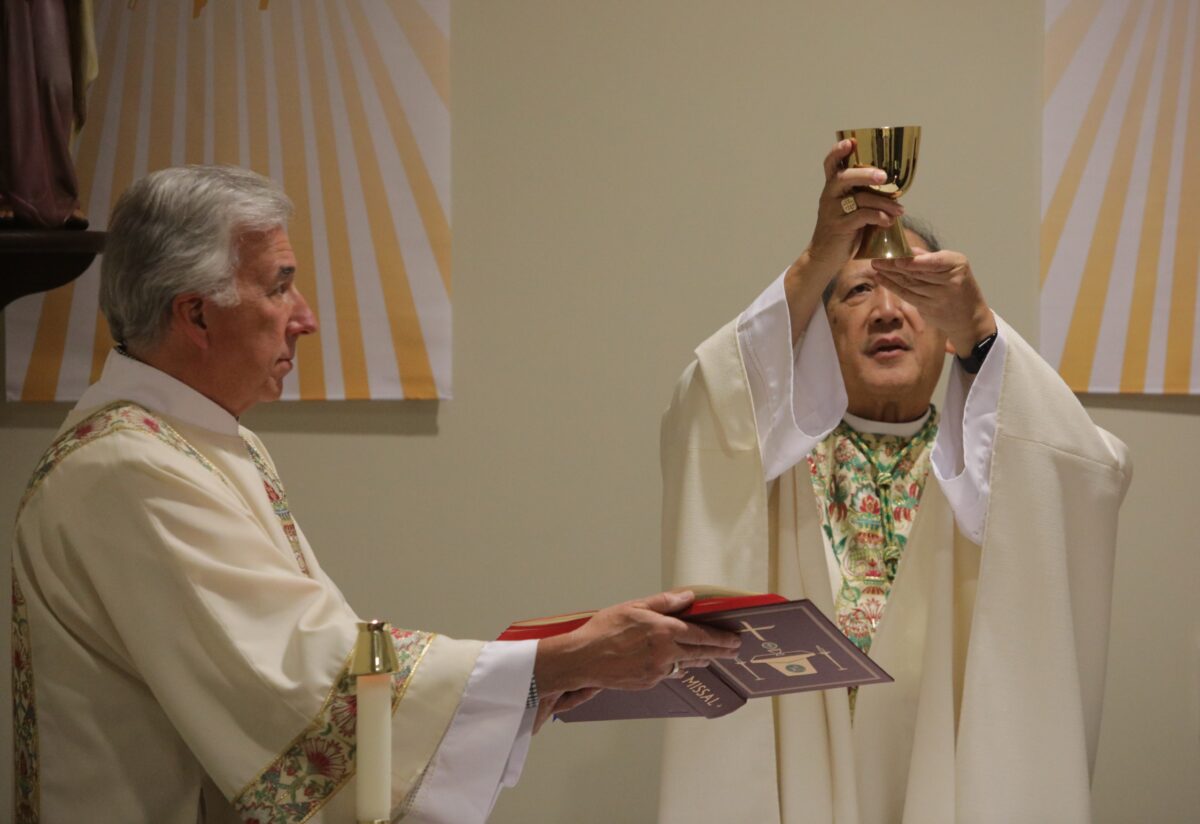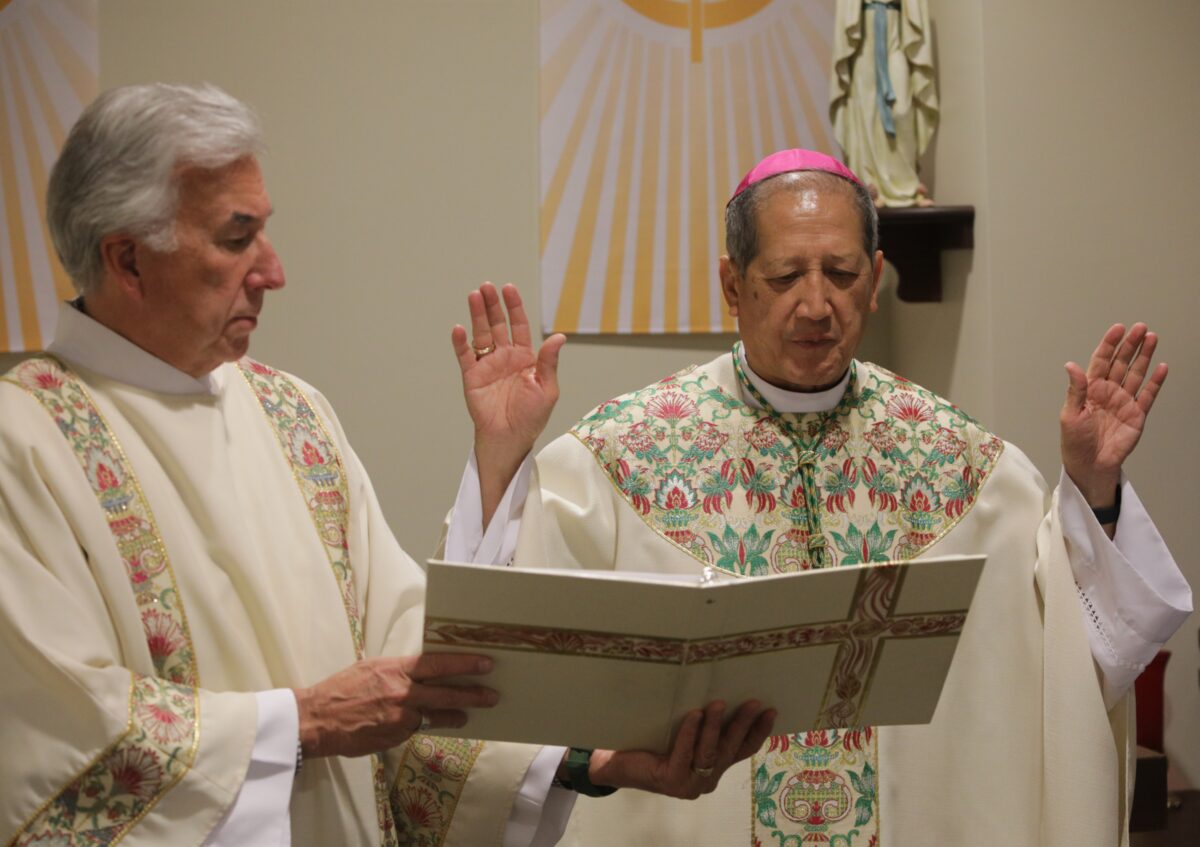 The dedication and consecration of the chapel was conducted by Bishop Oscar Solis of the Catholic Diocese of Salt Lake. The hourlong ceremony involved a dedicatory prayer, the sprinkling of the chapel with holy water and the offering of first Mass, among other rituals.