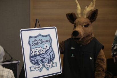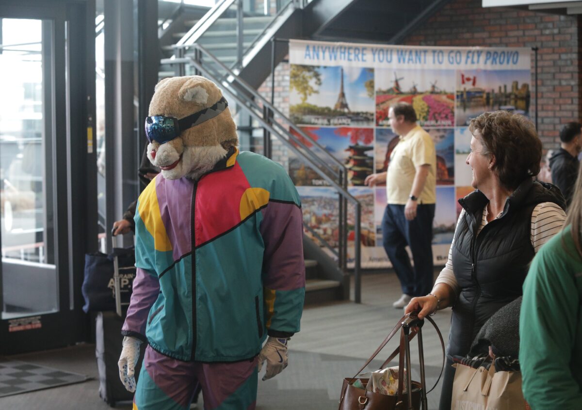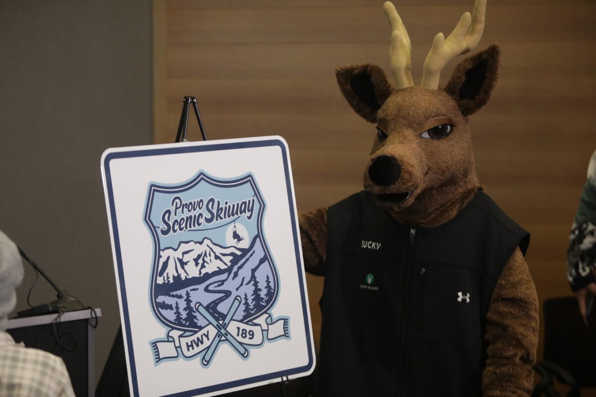 - A Deer Valley mascot unveils the “Provo Scenic Skiway” designation Thursday Dec. 18, 2025, at Provo Airport.