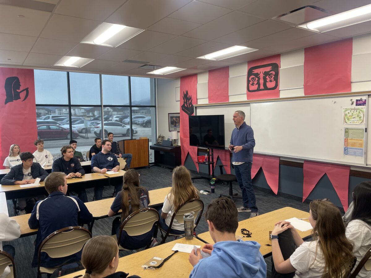 - Author James Dashner speaks to students at American Heritage School in American Fork during the school’s BookCon event on Monday, March 3, 2025.