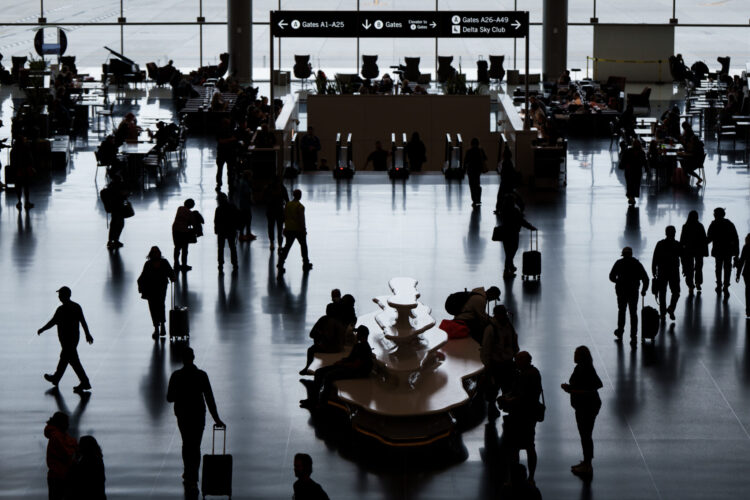 Travelers move through Salt Lake International Airport in Salt Lake City on Thursday, Oct. 16, 2025.Not far from the security line at the Salt Lake City International Airport, a woman struggled, screaming for help as two plain-clothed Immigration and Customs Enforcement officers dragged her out.