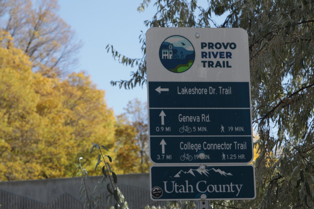 - A Provo River Trail sign is shown Sunday, Nov. 2, 2025, in Provo.