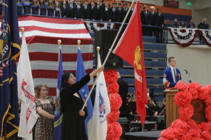 - The Marine flag is presented during the Veterans Tribute Tuesday, Nov. 11, 2025, at Timpview High School in Provo.