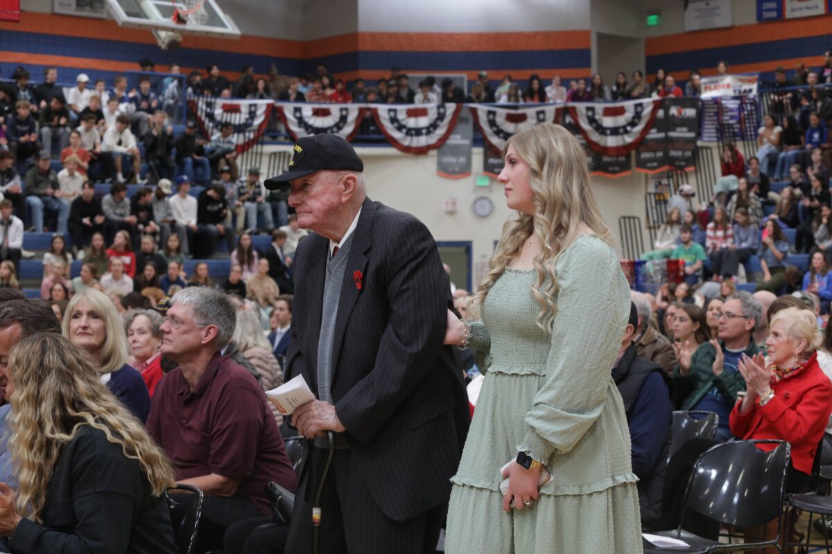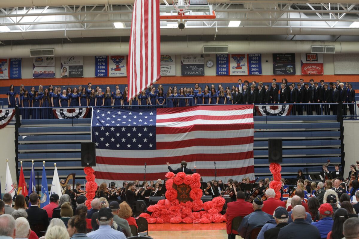Knight was one of many former military members celebrated at Timpview’s annual Veterans Tribute on Veterans Day, a grand ceremony that involved over 300 student participants, including a large choir and orchestra that performed patriotic anthems, the ballroom dance team and an Edgemont Elementary choir.