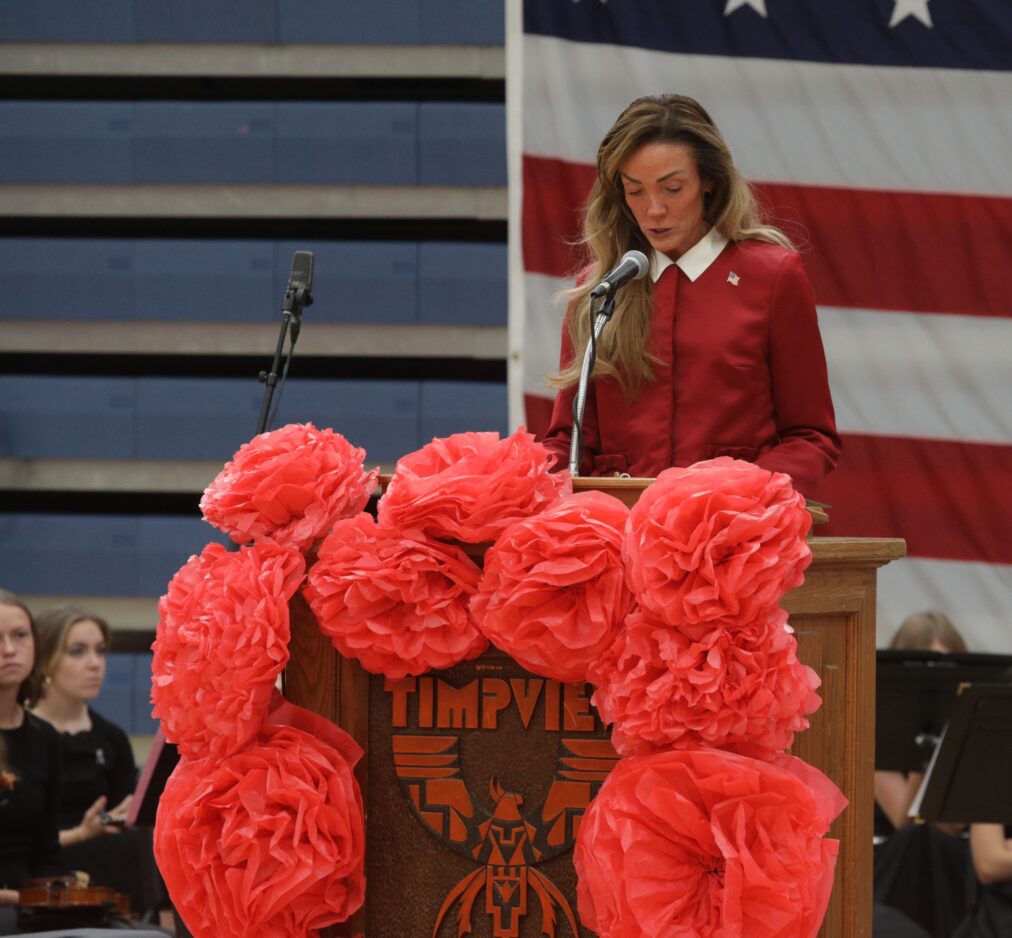 - Provo Mayor Michelle Kaufusi speaks at the Veterans Tribute Tuesday, Nov. 11, 2025, at Timpview High School in Provo.