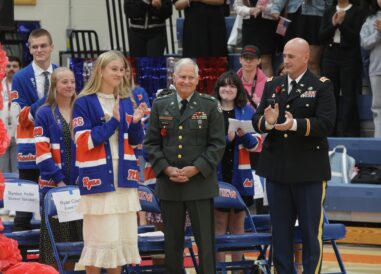 Knight was honored in front of the Timpview High School student body Tuesday by students Magdalena Leyton Lara and Stefany Suero, who described the military journey of an “outstanding soldier, leader and mentor.”