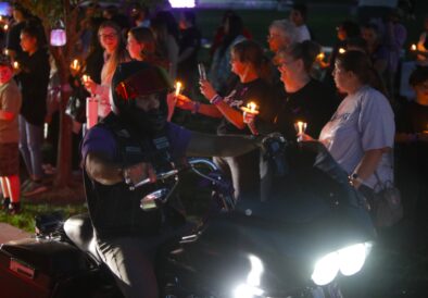 Led by an entourage of motorcycle riders, people held candles and reverently walked around Vineyard Grove Park.