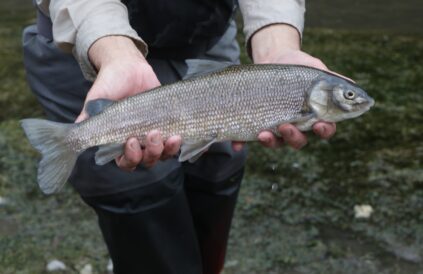 - A mountain whitefish fished out of the Provo River is shown Monday, Oct. 27, 2025, in Provo Canyon.