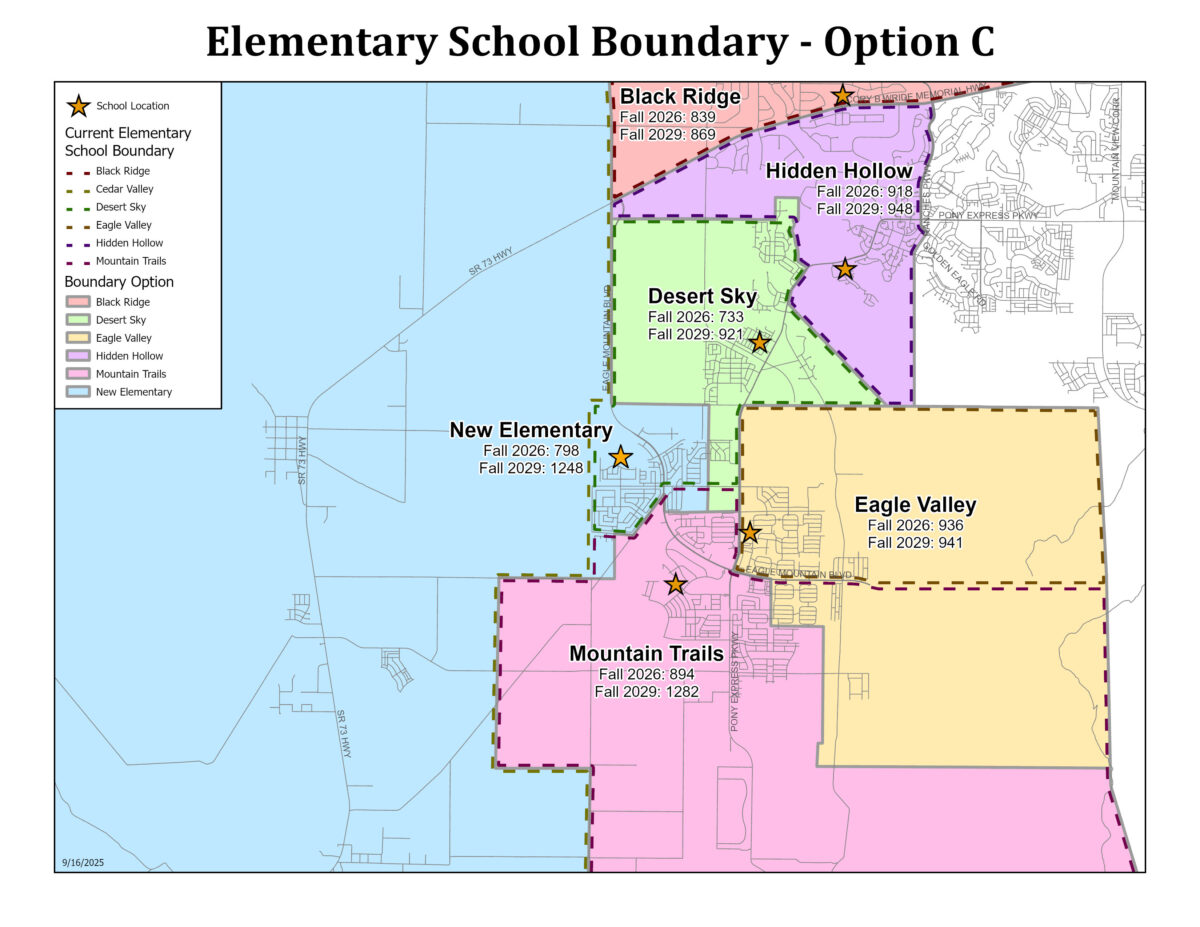 The schools included in the study are: Black Ridge Elementary, Hidden Hollow Elementary, Desert Sky Elementary, Eagle Valley Elementary, Mountain Trails Elementary, Cedar Valley Elementary and a new elementary school, set to be built in Eagle Mountain’s city center area.