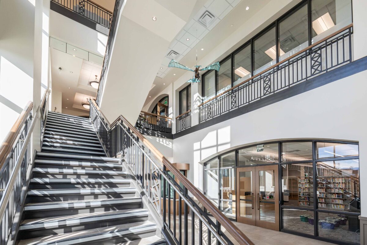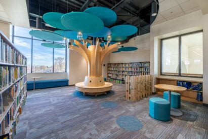 The library stretches two stories and holds a teen and children’s areas, an expanded programming room and a recording studio.