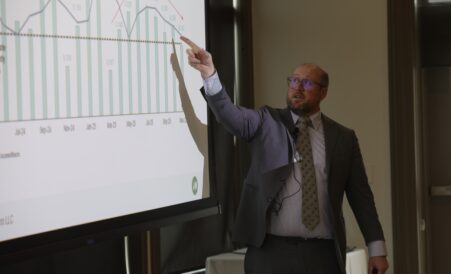 The Bank of Utah held an economic forecast event last week in Lehi, where national economist Tim Mahedy said inflation is easing and contributions to GDP growth continue to improve, but he warned there is still volatility in the labor market and that borrowing rates remain high.