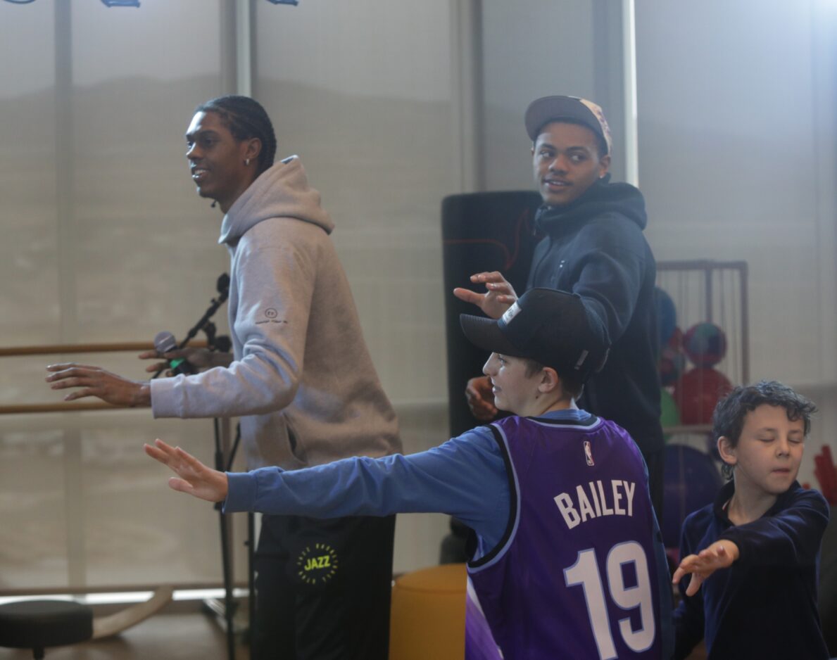 - Utah Jazz players Cody Williams and Keyonte George perform a dance with kids at the Children’s Hospital in Lehi on Tuesday, Feb. 24, 2026.