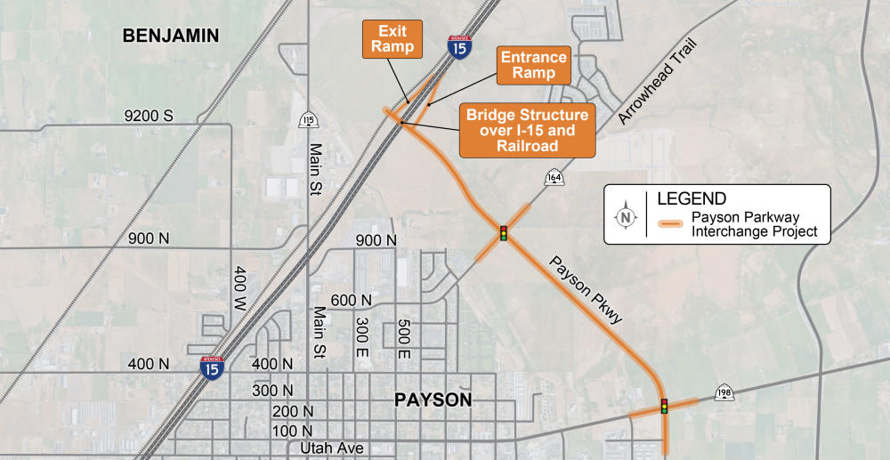 The Payson Parkway Interchange, an approximately $95 million project, will build a partial interchange at Interstate 15 in northeast Payson, with a northbound on-ramp and a southbound off-ramp. It will also include a road that will connect I-15 to SR 198.