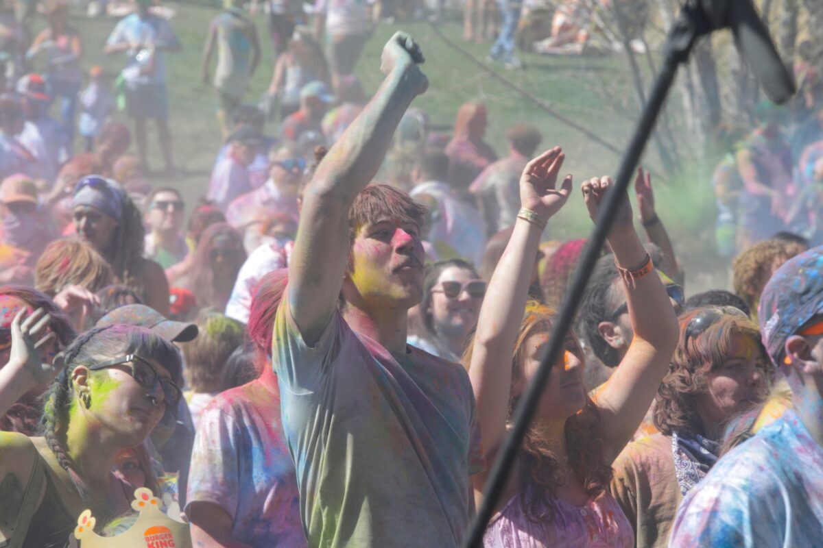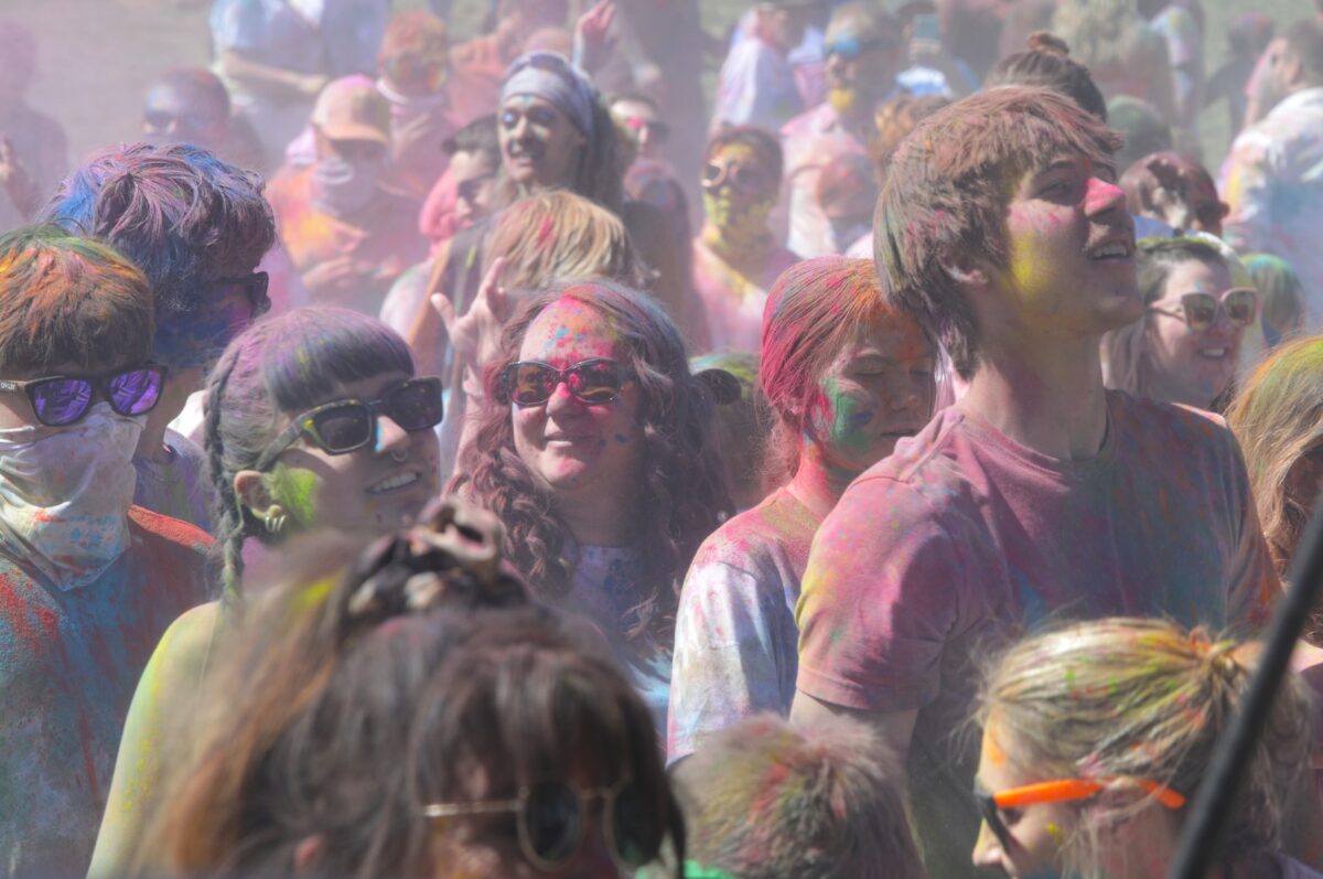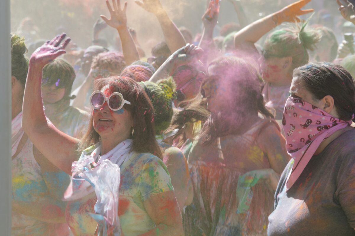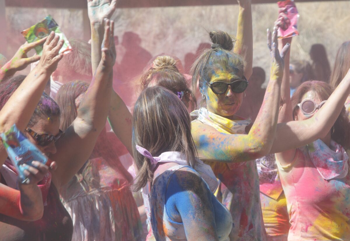 Thousands of individuals on Saturday and Sunday enjoyed throwing colored chalk in the air and at one another. They danced to the upbeat music played by a number of live bands, mediated in the sun or ate food.