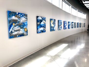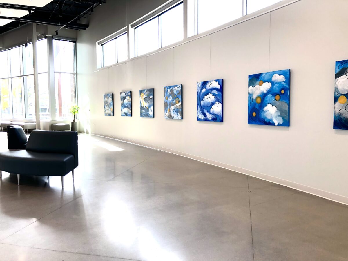 The art gallery features works by local artists as well as national artists and traveling exhibitions. Local Orem artist Abigail Morris is the current featured artist and creator of the “Strange Weather: A Study in Skies” pieces.