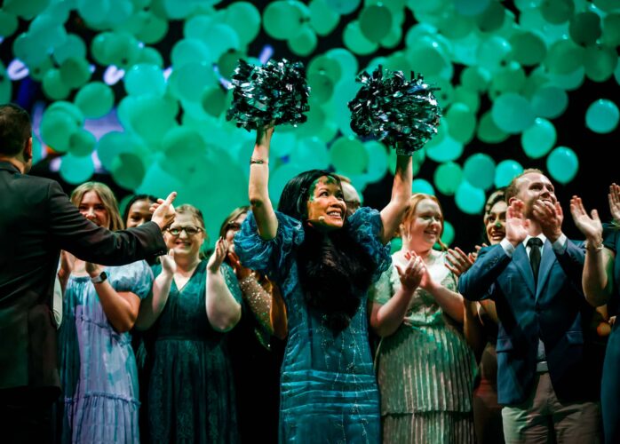 Utah Valley University President Astrid Tuminez celebrates students during the President's Scholarship Ball.When Utah Valley University President Astrid S. Tuminez was a young girl living in the slums of the Philippines, she would read and dream. Last Saturday, at the 32nd Annual President’s Scholarship Ball, she shared a page from the cheap notebook she used as a childhood journal. In it, she had written the words of George Bernard Shaw, which resonated with her then and now: “You see things (as they are), and you ask ‘Why?’ But I dream things that never were, and I ask, ‘Why not?'”