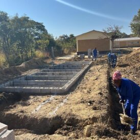 ZuLoo volunteers work on a project building a school in Zambia in this undated photo.