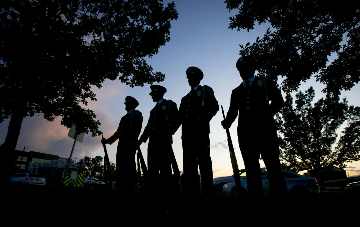 Members of the Lehi Police Department Honor Guard stand at the 18th annual Healing Field in Sandy on Wednesday, Sept. 11, 2019, as part of a service to commemorate those who lost their lives during the terrorist attacks of 9/11.