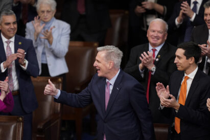 - Rep. Kevin McCarthy, R-Calif., smiles after winning the 15th vote in the House chamber as the House enters the fifth day trying to elect a speaker and convene the 118th Congress in Washington, early Saturday, Jan. 7, 2023.