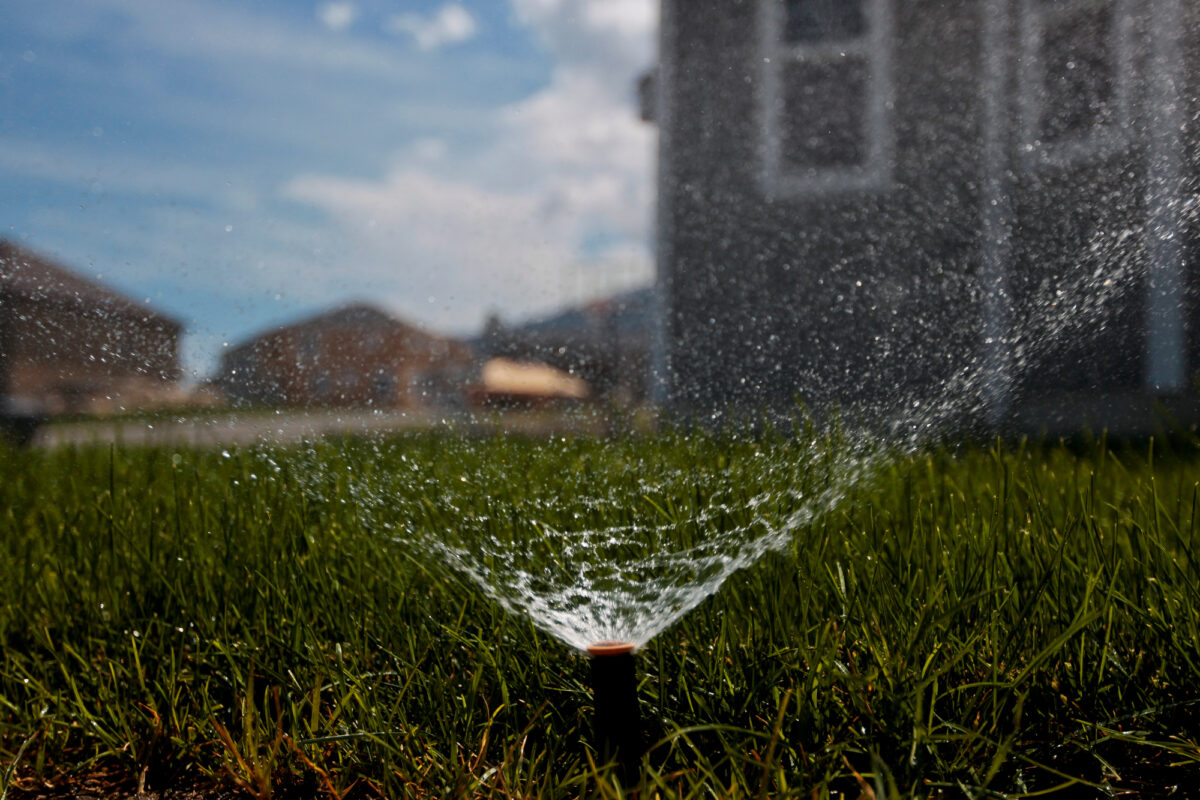 A home waters its lawn in the mid-afternoon in Saratoga Springs in 2014.
