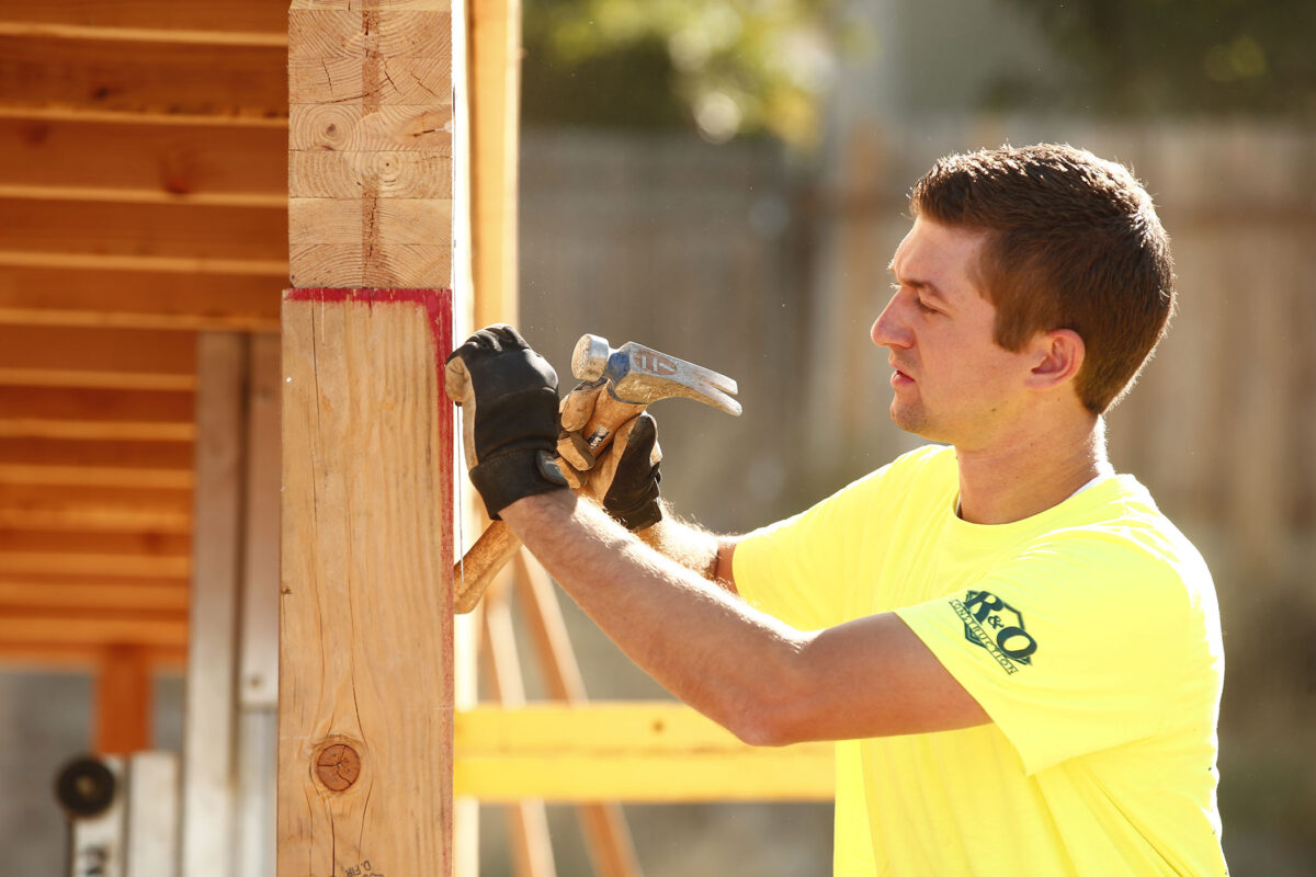 - A volunteer helps at a United Way Day of Caring project.