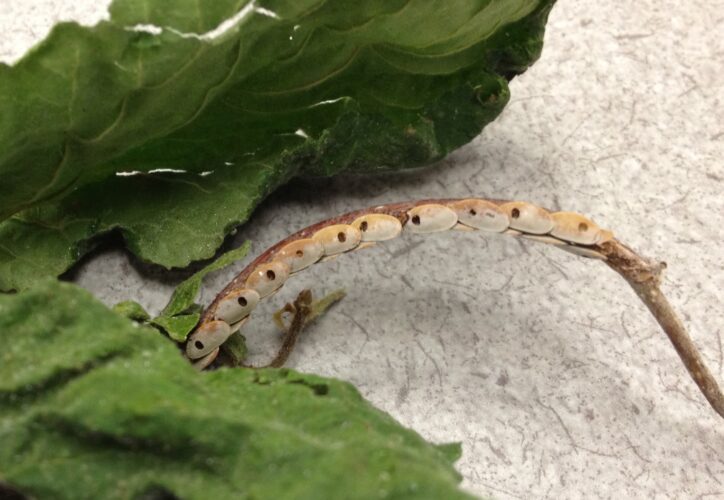 These are katydid eggs. Katydids are related to crickets. They’re large, light-green insects; up to 2 inches long ...