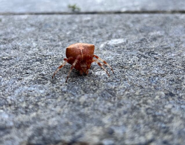 This little beauty is a cat-faced spider, also known as the jewel spider (Araneus gemmoides). It’s one of the orb-weaving spiders, harmless, but very ...