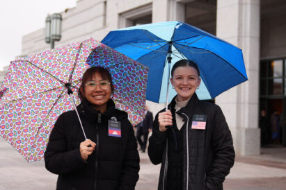 - Missionaries greet visitors outside the Conference Center on Temple Square in Salt Lake City during general conference weekend, April 1-2, 2023.
