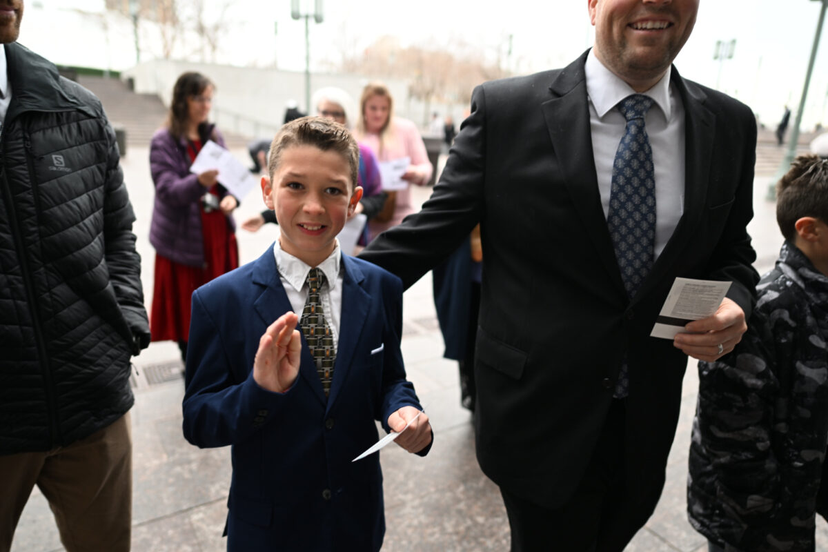 - A young boy and his family arrive at the Conference Center on Temple Square in Salt Lake City during general conference weekend, April 1-2, 2023.