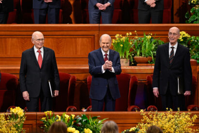 - The First Presidency of The Church of Jesus Christ of Latter-day Saints takes their seats on the stand in the Conference Center in Salt Lake City before the morning session of general conference on Sunday, April 2, 2023.