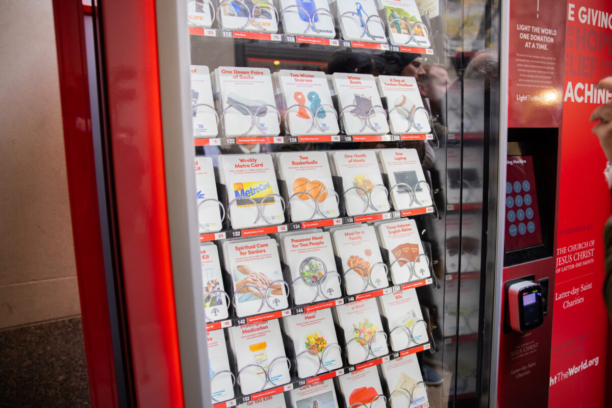 - Light the World Giving Machines made their debut at New York City’s Rockefeller Center near its iconic Christmas tree on Giving Tuesday, Nov. 30, 2021. Since 2017, The Church of Jesus Christ of Latter-day Saints has organized the annual effort to help those in need around the world.