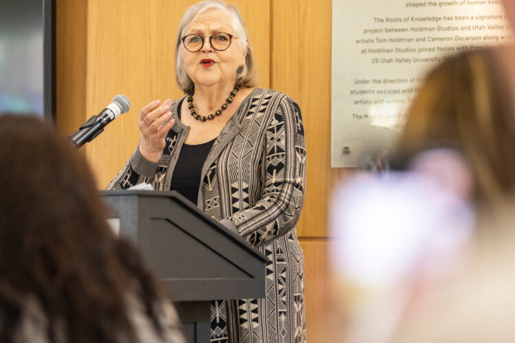 Bonnie Balliff-Spanvill speaks during an announcement at the Roots of Knowledge Gallery on the campus of Utah Valley University in Orem on Thursday, Aug. 26, 2021.Utah Valley University, in partnership with the Division of Academic Affairs, announced Thursday the creation of the Women’s Success Center on campus.