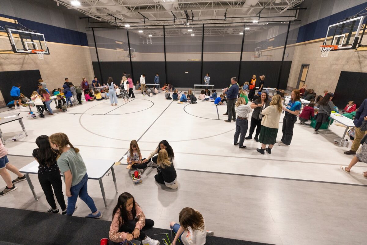 - Students work in the gym at Trailside Elementary School on Wednesday, April 21, 2022.