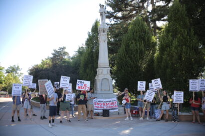 Potter, an organizer and member of the Party for Socialism and Liberation, helped set up the protest in Pioneer Park in response to a video filmed on July 7 showing members of the Provo Police Department restraining a man on Center Street, with one punching the man as he lays on the sidewalk.