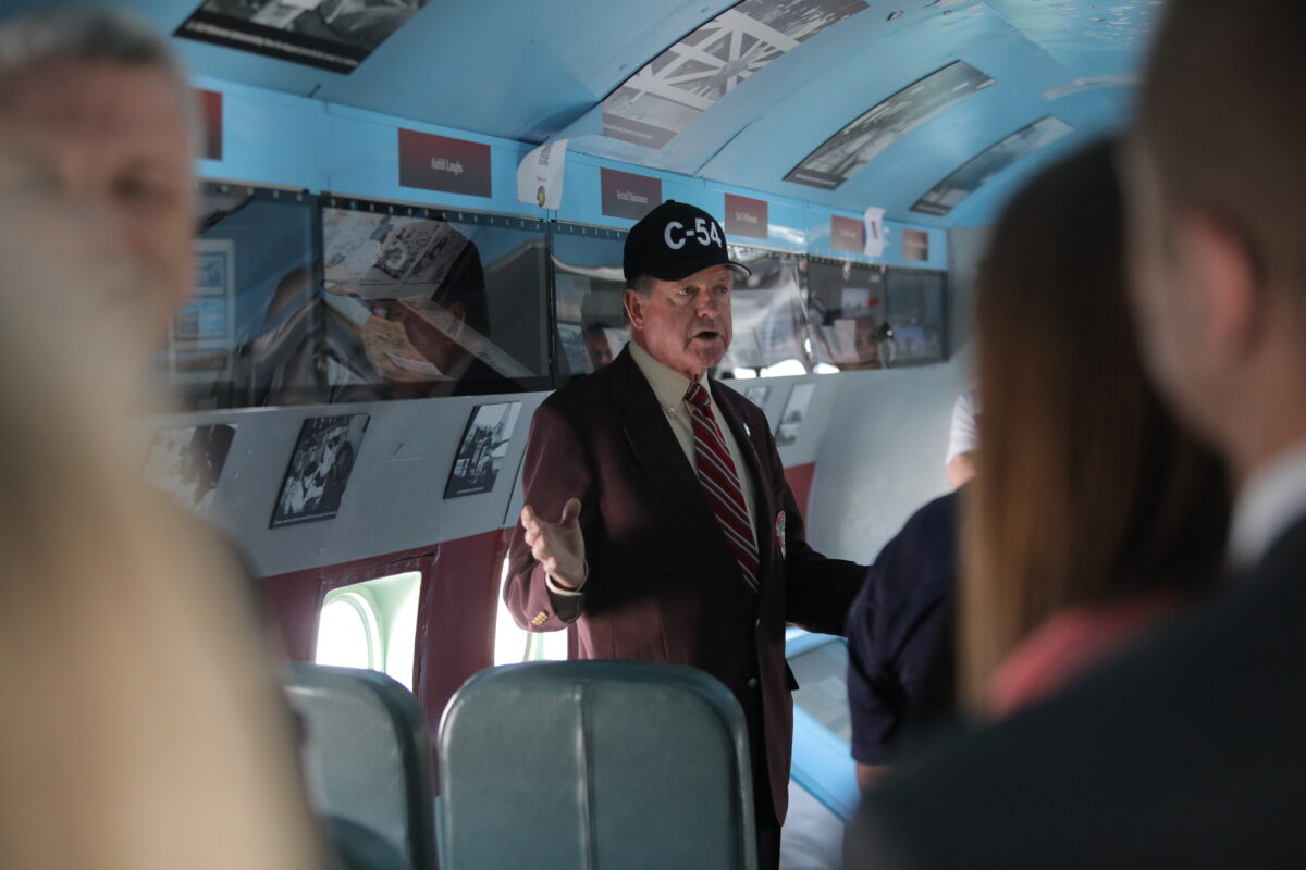- Historian Eddie Ide tells attendees about Gail Halvorsen and the Berlin Airlift onboard a C-54 aircraft at the Provo Airport on Friday, May 20, 2022.
