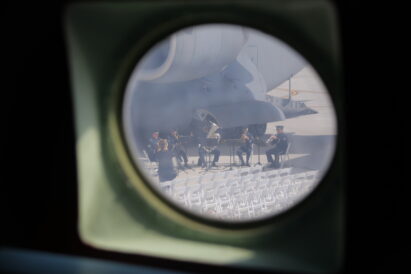 - Members of Travis Brass, an ensemble of the Air Force Band of the Golden West, are seen playing music through the window of a C-54 housing Gail Halvorsen artifacts at the Provo Airport on Friday, May 20, 2022.