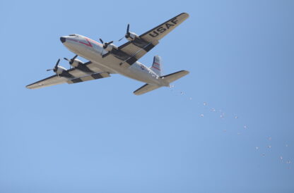 All of it a preamble, a warm-up act for a recreation fo Halvorsen’s candy drop with specialized parachutes and chocolate. As the all-ages crowd watched intently, a C-17 was loaded with 500 chocolate bars and slowly crept along the runway before ultimately taking flight.