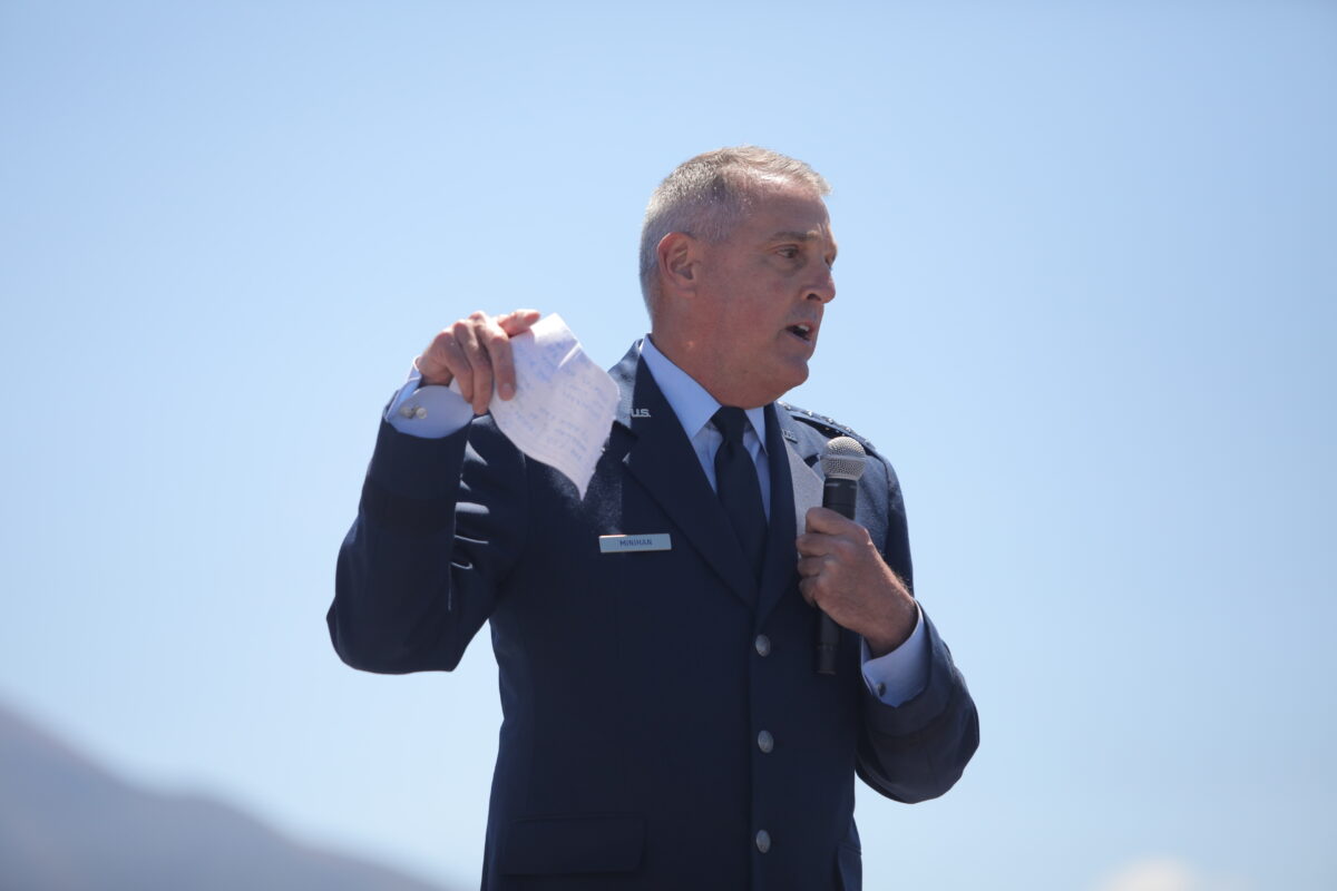 - Gen. Mike Minihan, commander of Air Mobility Command, speaks to the crowd gathered for a celebration of Gail Halvorsen at the Spanish Fork Airport on Saturday, May 21, 2022.
