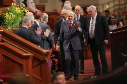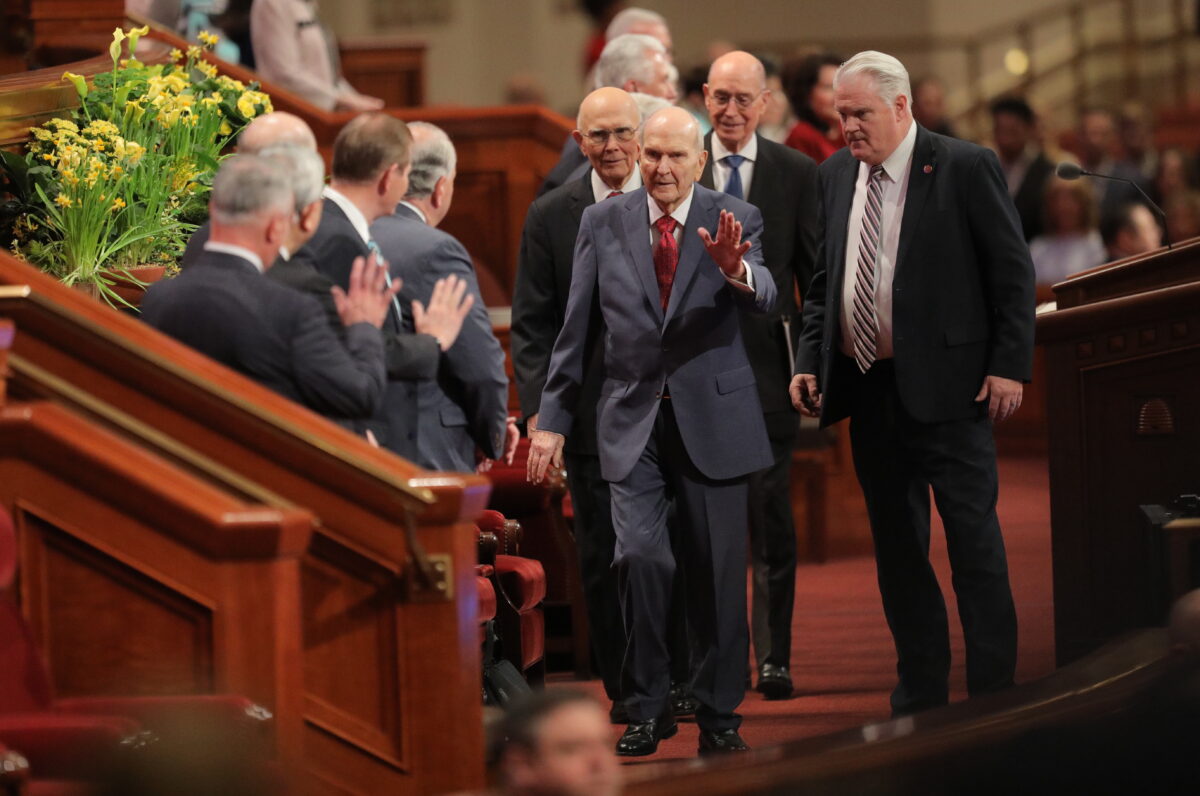 - President Russell M. Nelson enters the morning session of the 193rd Semiannual General Conference of The Church of Jesus Christ of Latter-day Saints at the conference center in Salt Lake City on Saturday, April 1, 2023.